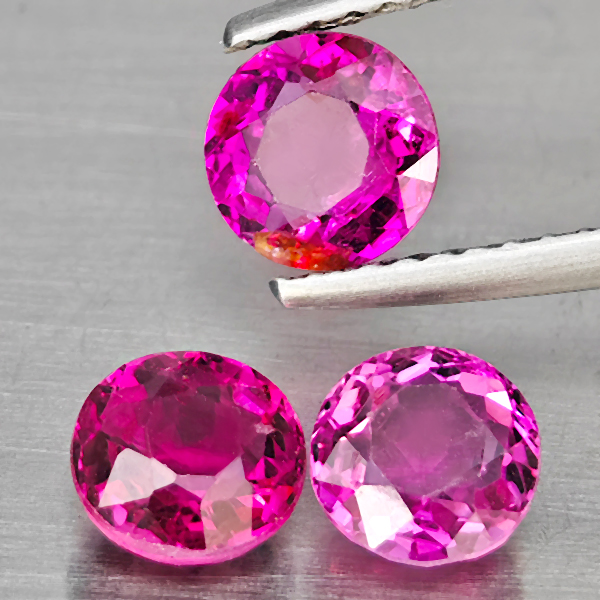 Natural Pink Tourmaline 2.09 Ct. 3 Pcs Round Shape 5.5 Mm Gemstones From Nigeria
