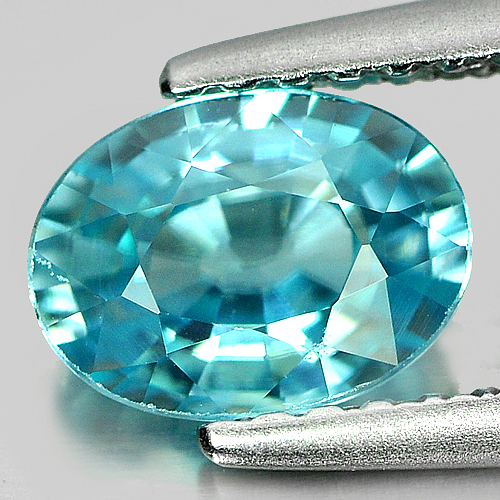 Blue Zircon 1.26 Ct. Clean Oval Shape 7.1 x 5.3 Mm. Natural Gemstone Cambodia