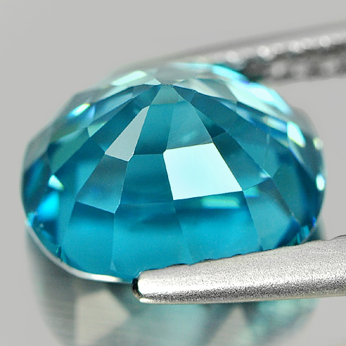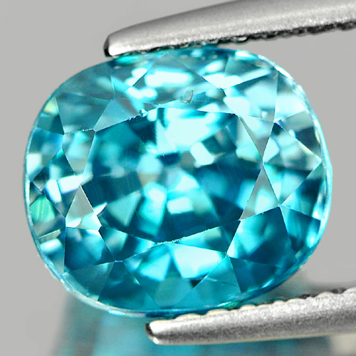 Blue Zircon 3.70 Ct. Cushion shape 8.5 x 7.4 Mm. Natural Gemstone Cambodia