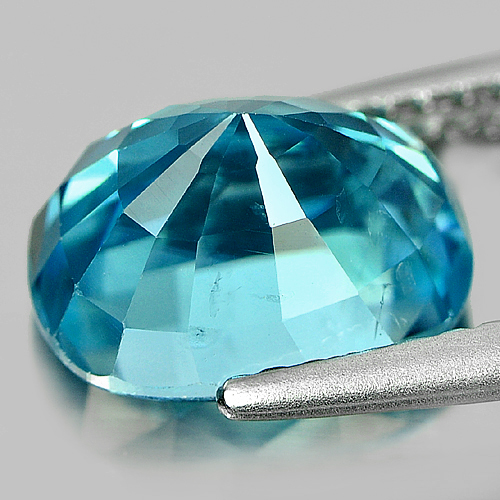 Blue Zircon 4.21 Ct. Cushion Shape Size 9.5 x 7 Mm. Natural Gemstone Cambodia