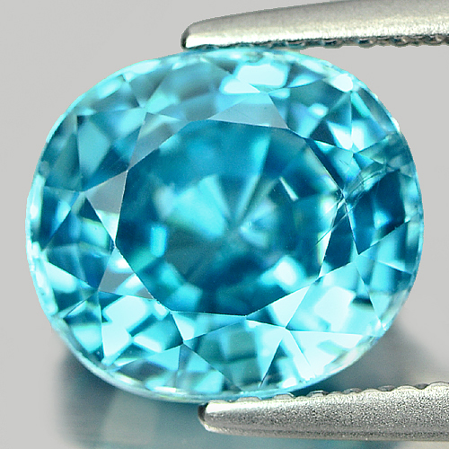 Blue Zircon 4.73 Ct. Oval Shape 9.8 x 8.7 x 5.4 Mm. Natural Gemstone Cambodia