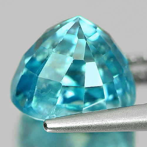 Blue Zircon 3.14 Ct. Cushion Shape Size 6.9 x 6.6 Mm. Natural Gemstone Cambodia