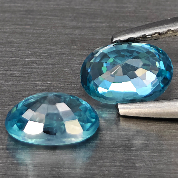 Natural Blue Zircon 1.65 Ct. 2 Pcs Oval Shape 6.3 x 4.3 Mm Gemstone From Cambodia