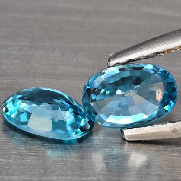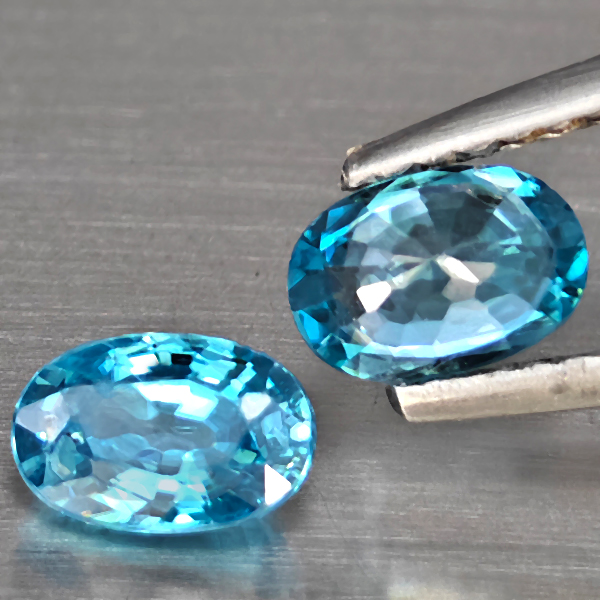Natural Blue Zircon 1.43 Ct. 2 Pcs Oval Shape 6.2 x 4.2 Mm Gemstone from Cambodia
