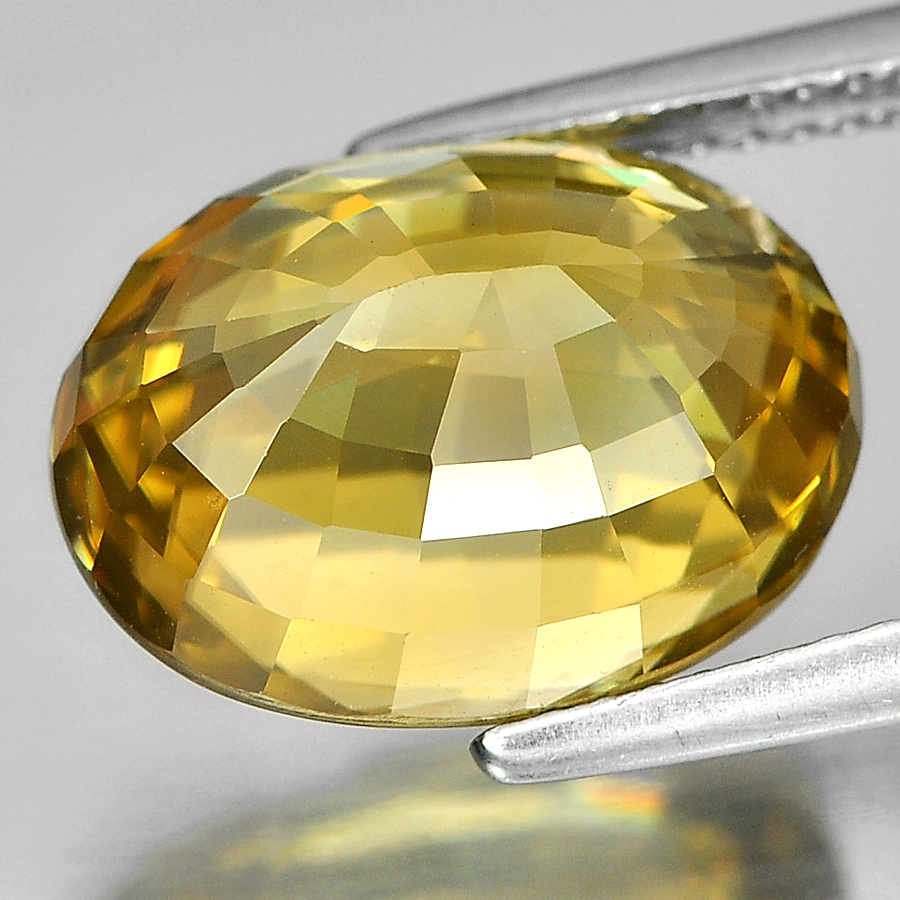 Yellow Zircon 10.86 Ct. Oval Shape 13.7 x 10.4 Mm. Natural Gemstone Cambodia