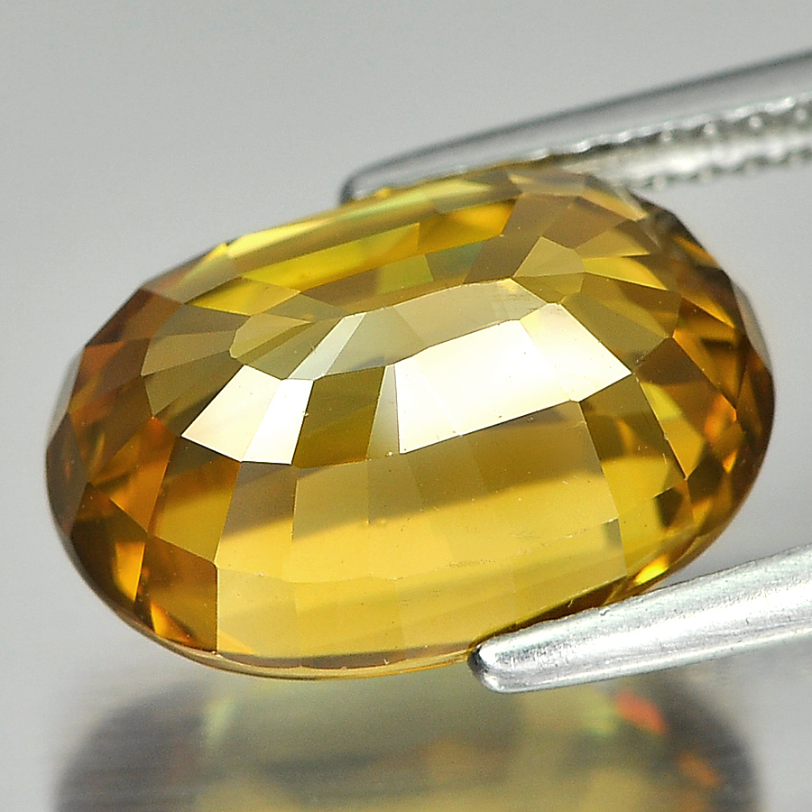 Yellow Zircon 10.04 Ct. VVS Oval Shape 13.4 x 9.6 Mm. Natural Gemstone Cambodia
