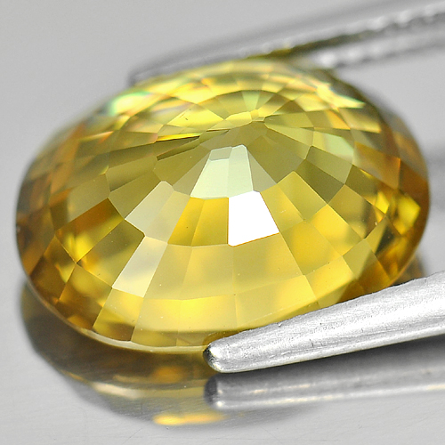 Yellow Zircon 9.37 Ct. VVS Oval Shape 13.4 x 10.3 Mm. Natural Gemstone Cambodia