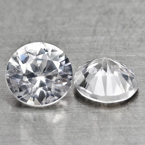 Natural White Zircon 1.02 Ct. 2 Pcs. Round Diamond Cut 4.4 Mm Gemstones