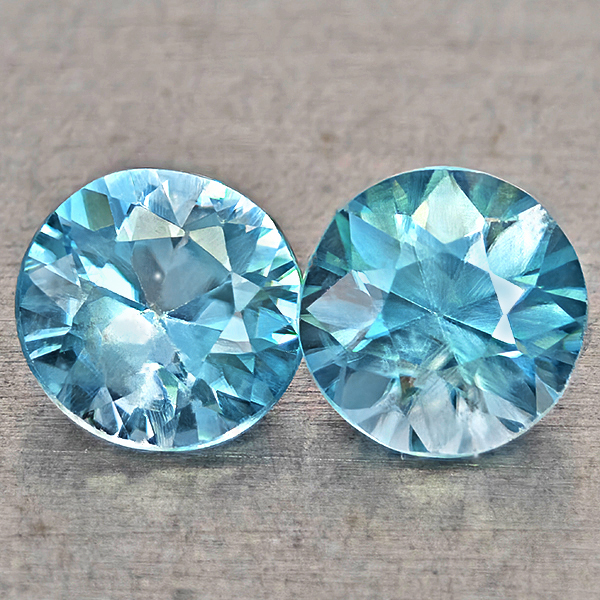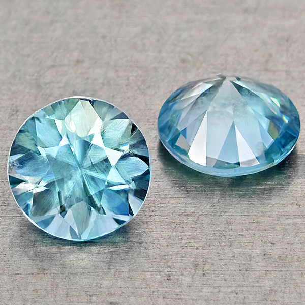 Natural Blue Zircon 1.21 Ct. 2 Pcs Round Diamond Cut 4.9 Mm Gemstones