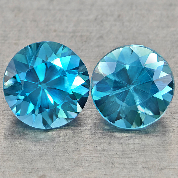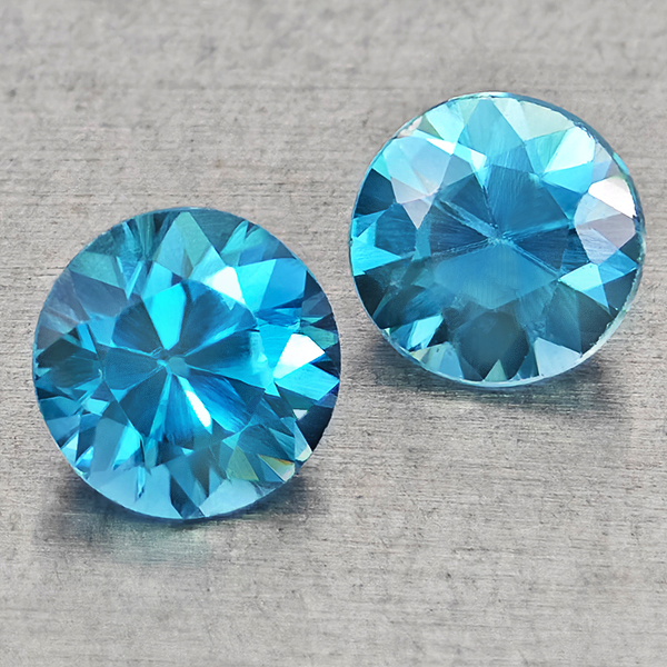 Natural Blue Zircon 1.33 Ct. 2 Pcs Round Diamond Cut 5.1 Mm Gemstones