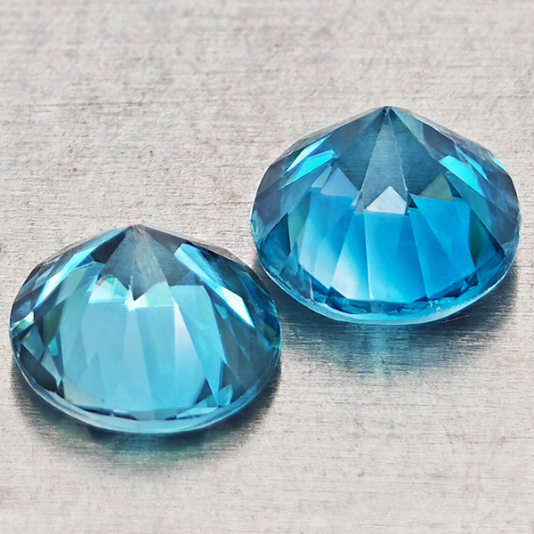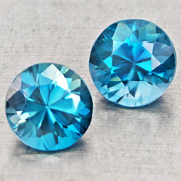 Natural Blue Zircon 1.69 Ct. 2 Pcs Round Diamond Cut 5.3 Mm Gemstones