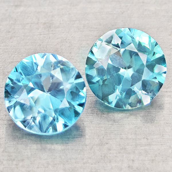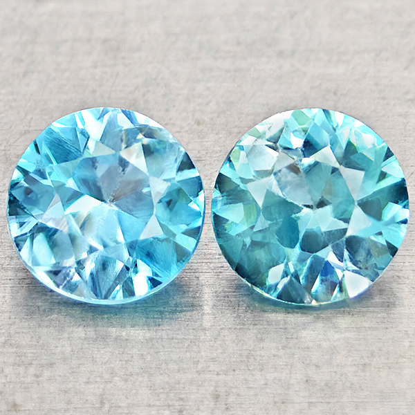 Natural Blue Zircon 1.46 Ct. 2 Pcs Round Diamond Cut 5.1 Mm Gemstones