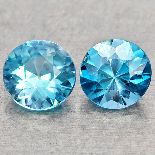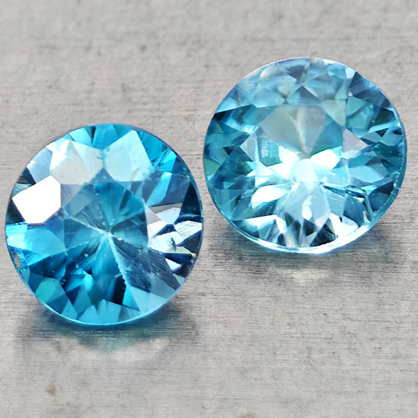 Natural Blue Zircon 1.17 Ct. 2 Pcs Round Diamond Cut 4.9 Mm Gemstones