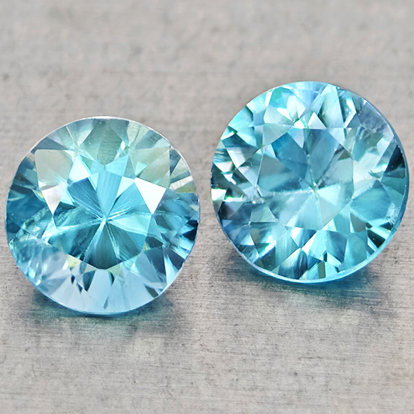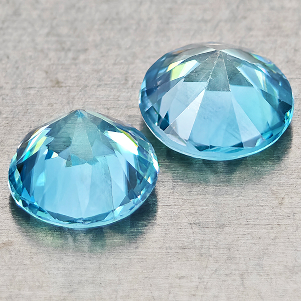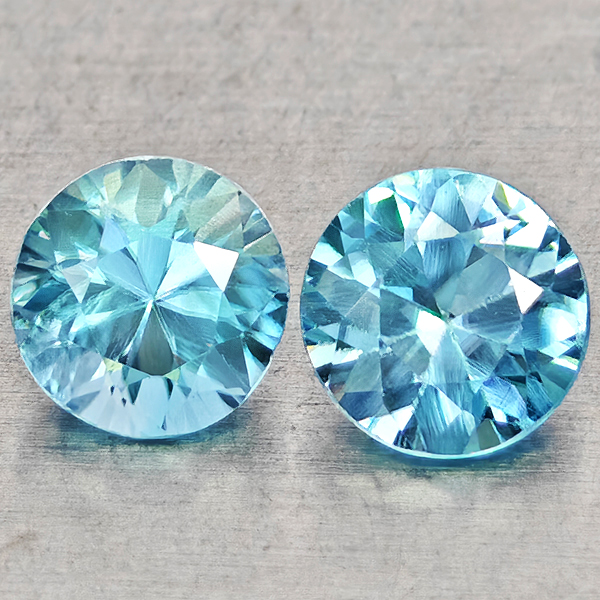 Natural Blue Zircon 1.27 Ct. 2 Pcs Round Diamond Cut 5 Mm Gemstones