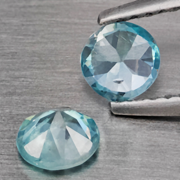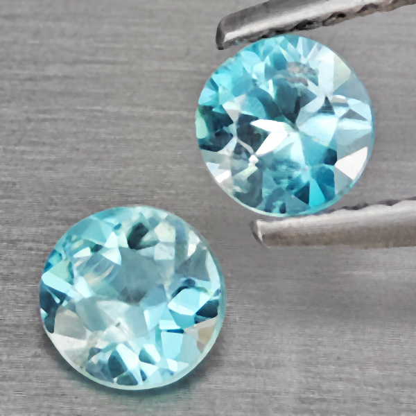 Natural Baby Blue Zircon 1.17 Ct. 2 Pcs Round Diamond Cut 4.8 Mm Gemstone from Cambodia