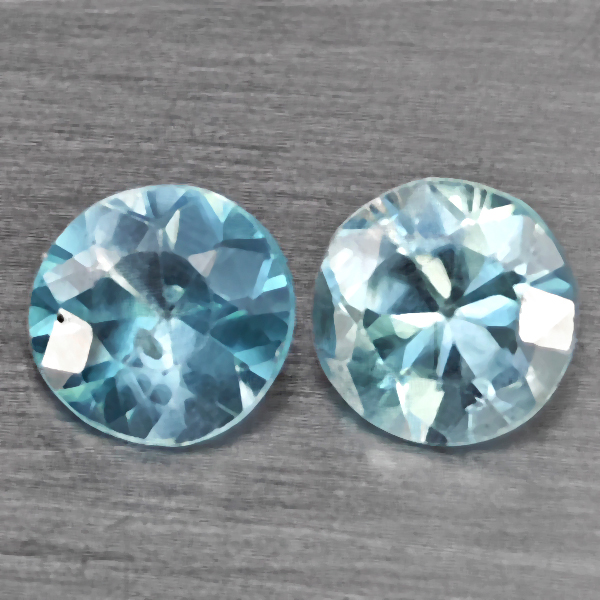Natural Baby Blue Zircon 0.96 Ct. 2 Pcs Round Diamond Cut 4.7 Mm Gemstone from Cambodia