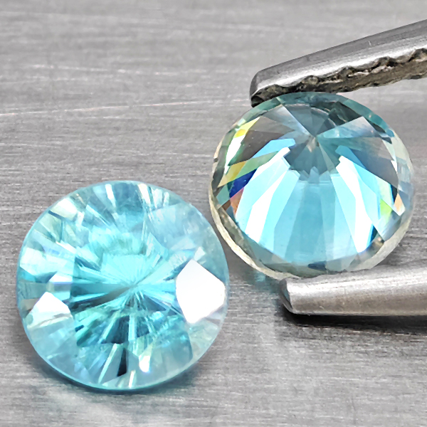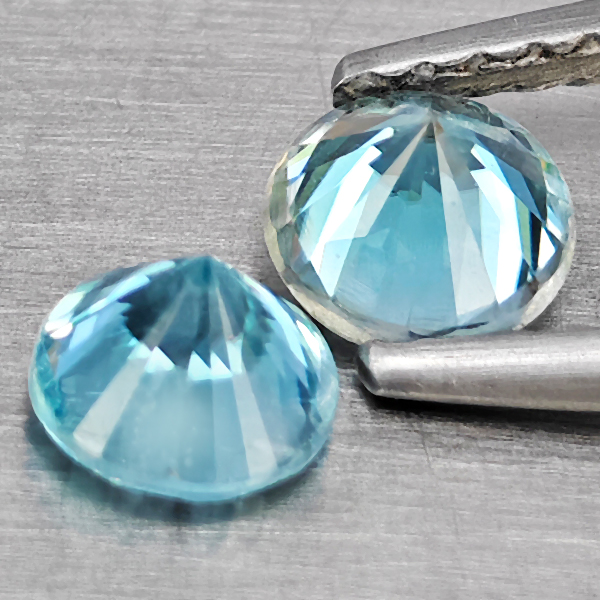 Natural Blue Zircon 1.66 Ct. 2 Pcs Round Diamond Cut 5.1 Mm Gemstone From Cambodia