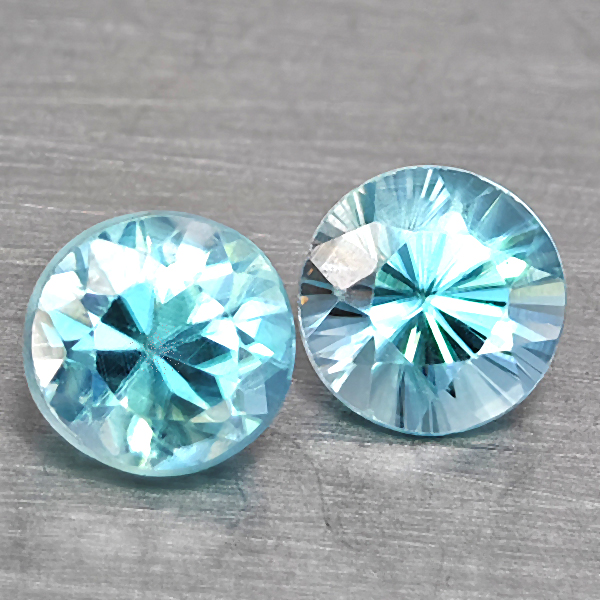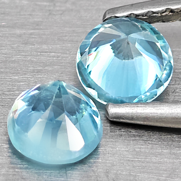 Natural Blue Zircon 1.11 Ct. 2 Pcs Round Diamond Cut 4.7 Mm Gemstone From Cambodia