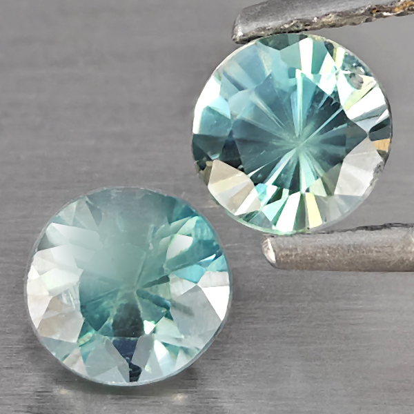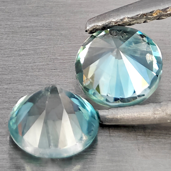 Natural Blue Zircon 1.53 Ct. 2 Pcs Round Diamond Cut 5.3 Mm Gemstone From Cambodia
