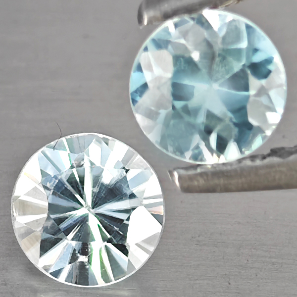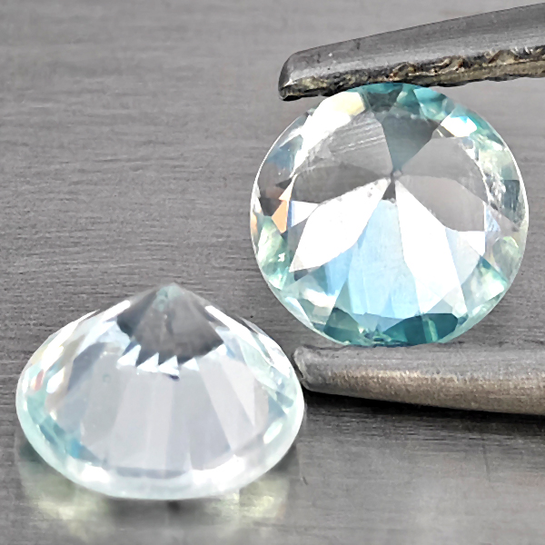 Natural Blue Zircon 1.53 Ct. 2 Pcs Round Diamond Cut 5.3 Mm Gemstone From Cambodia