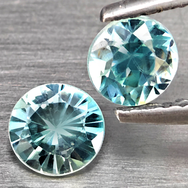 Natural Blue Zircon 1.33 Ct. 2 Pcs Round Diamond Cut 5.3 Mm Gemstone From Cambodia