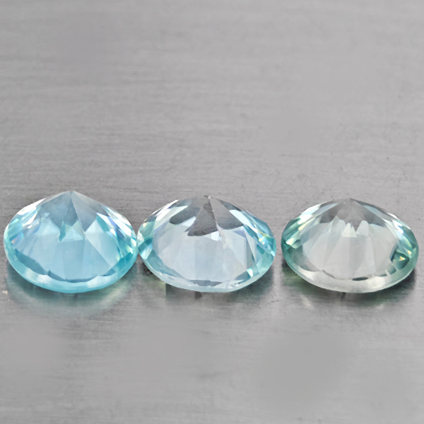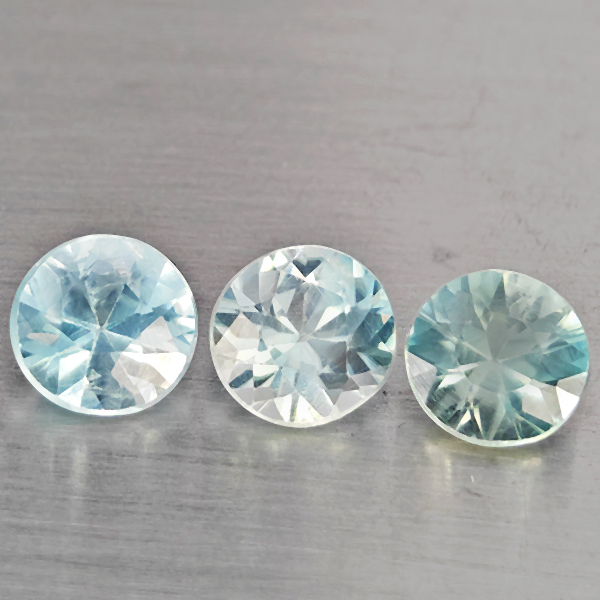 Natural Blue Zircon 2.45 Ct. 3 Pcs Round Diamond Cut Gemstone From Cambodia