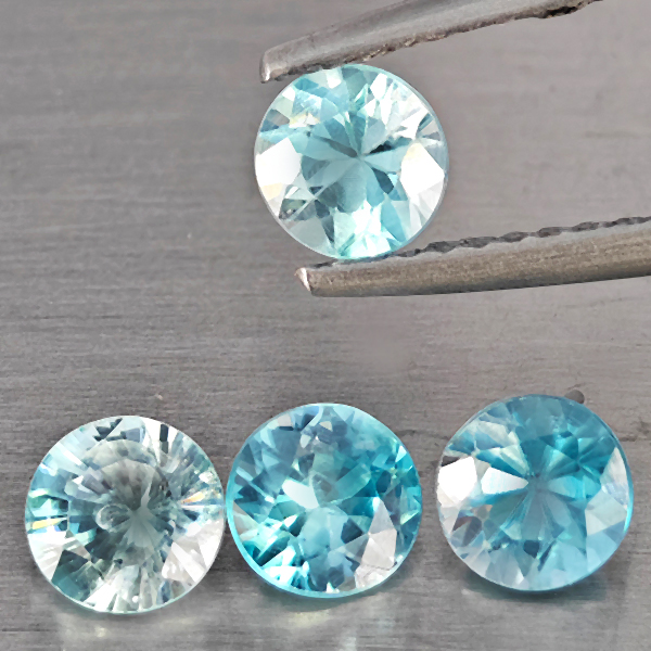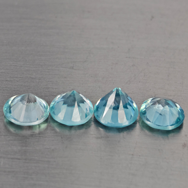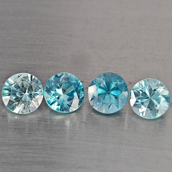 Natural Blue Zircon 1.82 Ct. 4 Pcs Round Diamond Cut Gemstone From Cambodia