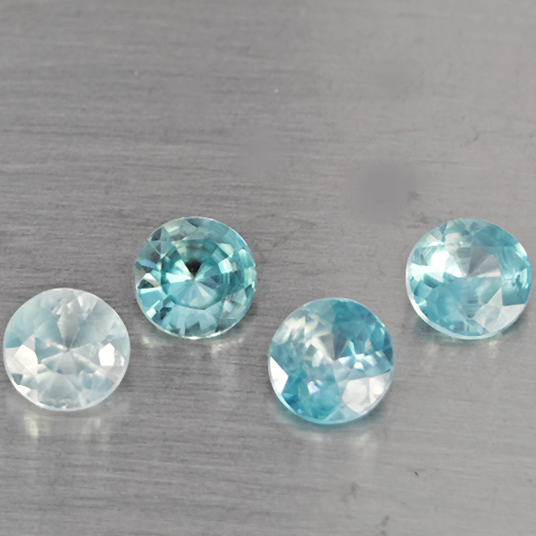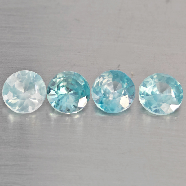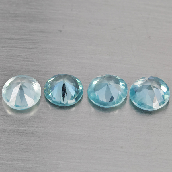 Natural Blue Zircon 1.88 Ct. 4 Pcs Round Diamond Cut 4.6 Mm Gemstone From Cambodia