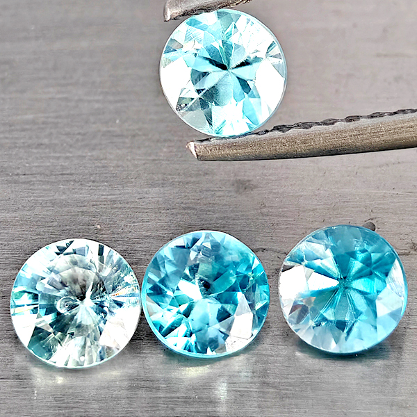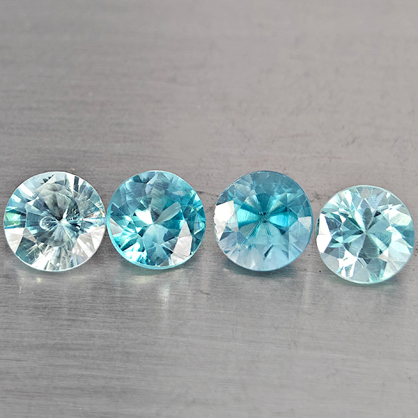 Natural Blue Zircon 1.82 Ct. 4 Pcs Round Diamond Cut Gemstone From Cambodia