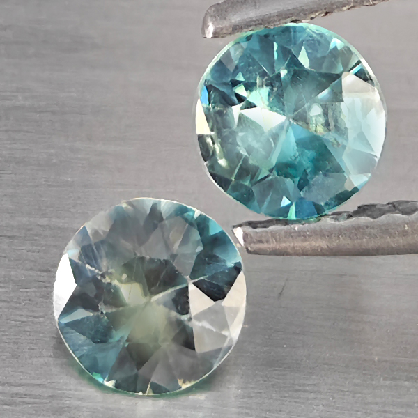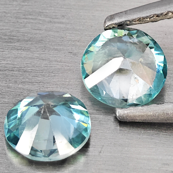 Natural Blue Zircon 1.18 Ct. 2 Pcs Round Diamond Cut 5.2 Mm Gemstone From Cambodia