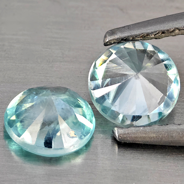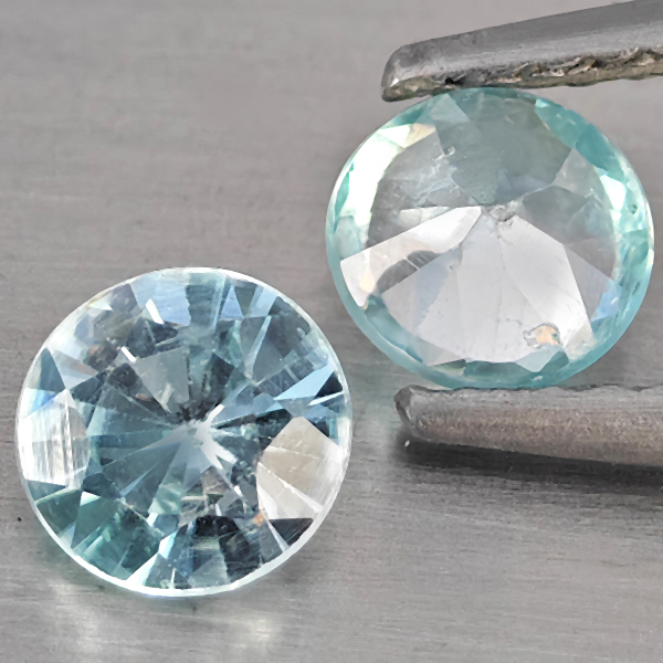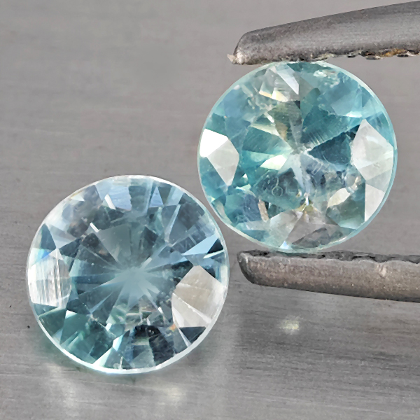Natural Blue Zircon 1.24 Ct. 2 Pcs Round Diamond Cut 5 Mm Gemstone From Cambodia