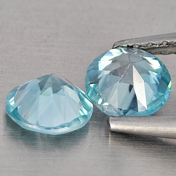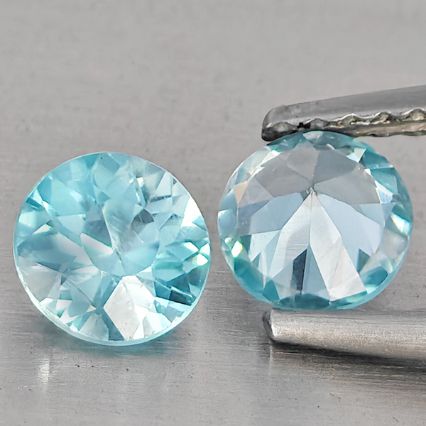 Natural Blue Zircon 1.18 Ct. 2 Pcs Round Diamond Cut 5.2 Mm Gemstone From Cambodia