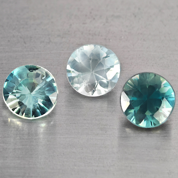 Natural Blue Zircon 1.91 Ct. 3 Pcs Round Diamond Cut 5 Mm Gemstone From Cambodia