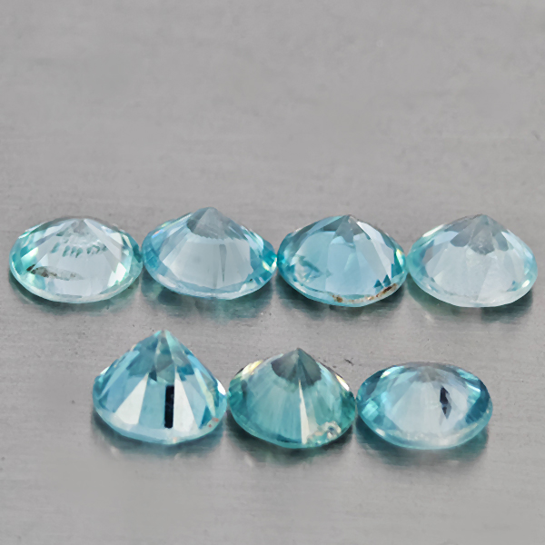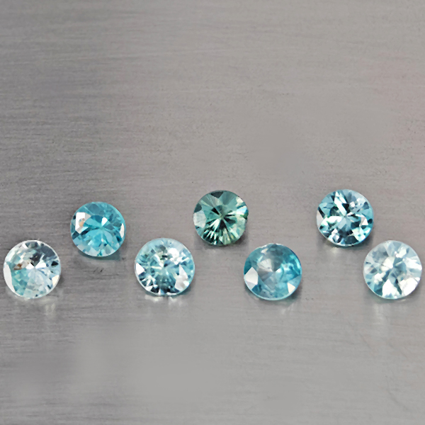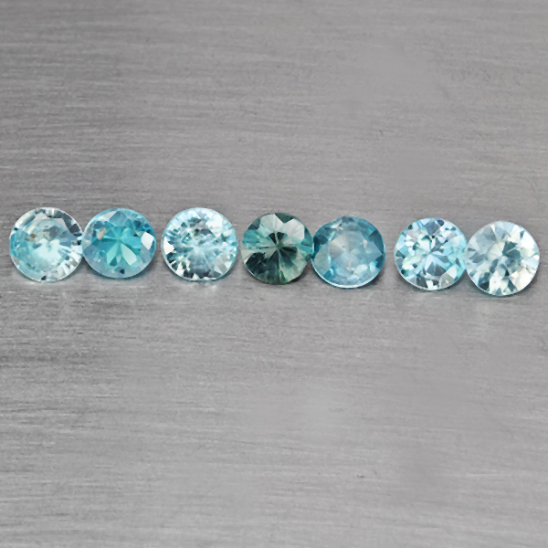 Natural Blue Zircon 3.55 Ct. 7 Pcs Round Diamond Cut 4.7 Mm Gemstone From Cambodia