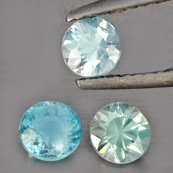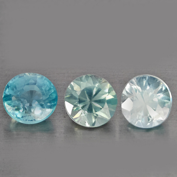 Natural Blue Zircon 1.90 Ct. 3 Pcs Round Diamond Cut 4.8 Mm Gemstone From Cambodia