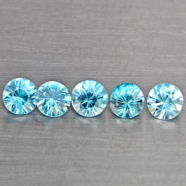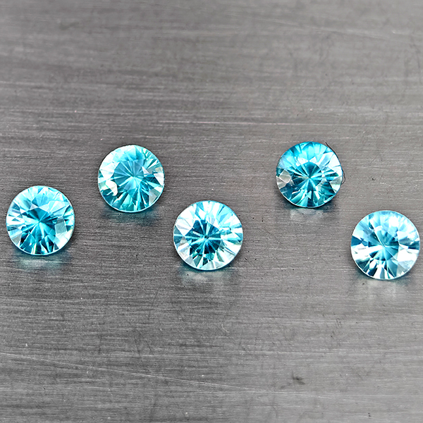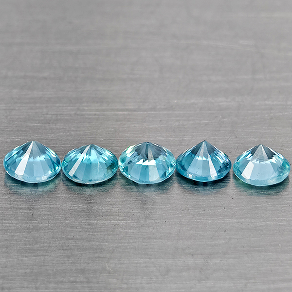 Natural Blue Zircon 1.85 Ct. 5 Pcs Round Diamond Cut 4.1 Mm Gemstone from Cambodia