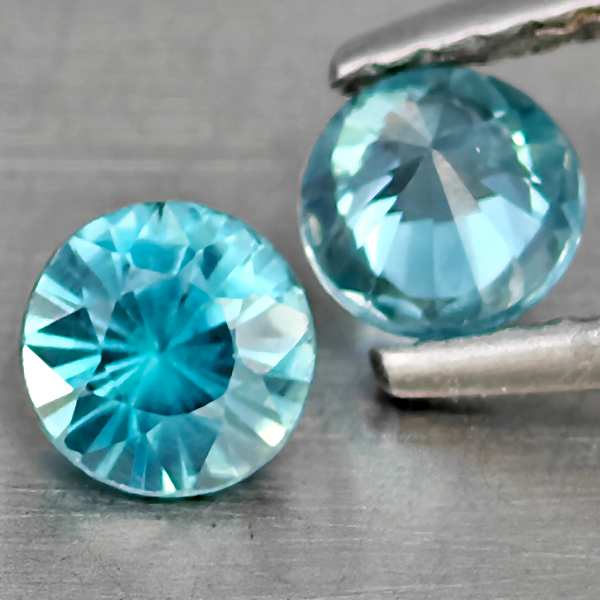 Natural Blue Zircon 1.06 Ct. 2 Pcs Round Diamond Cut 4.5 Mm Gemstone from Cambodia