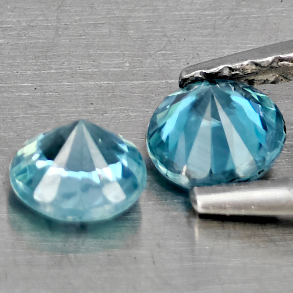 Natural Blue Zircon 0.97 Ct. 2 Pcs Round Diamond Cut 4.6 Mm Gemstone from Cambodia