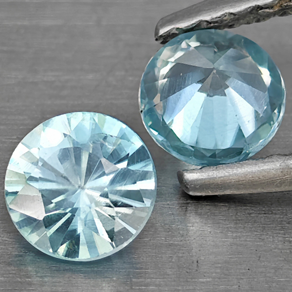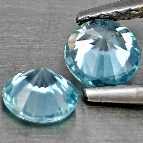 Natural Blue Zircon 0.95 Ct. 2 Pcs Round Diamond Cut 4.6 Mm Gemstone from Cambodia