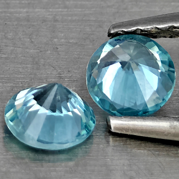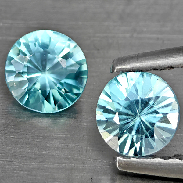 Natural Blue Zircon 0.97 Ct. 2 Pcs Round Diamond Cut 4.6 Mm Gemstone from Cambodia