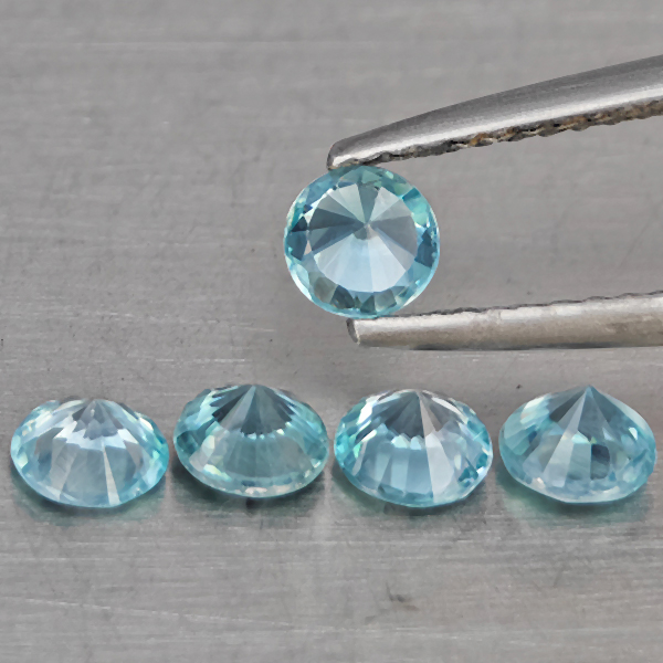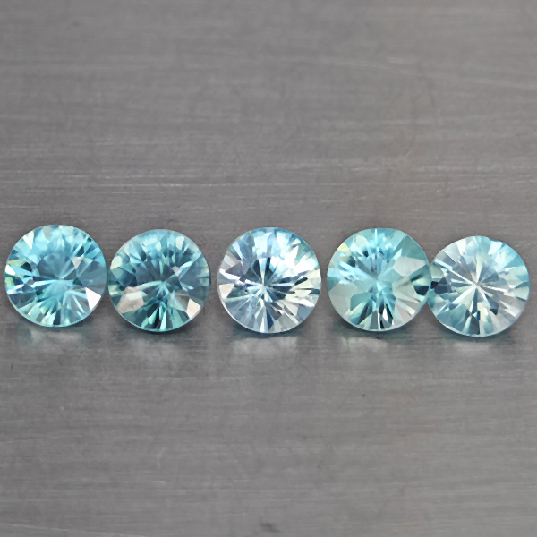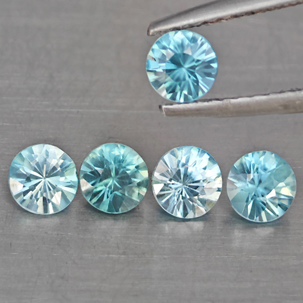 Natural Blue Zircon 1.87 Ct. 5 Pcs Round Diamond Cut 4.1 Mm Gemstone from Cambodia