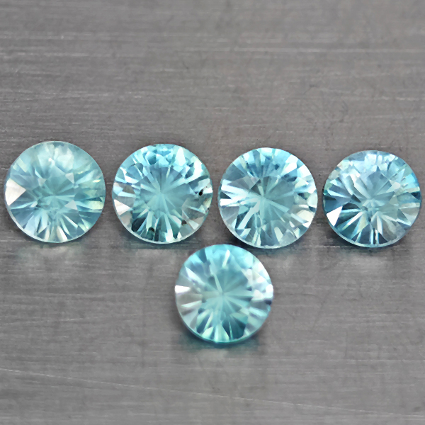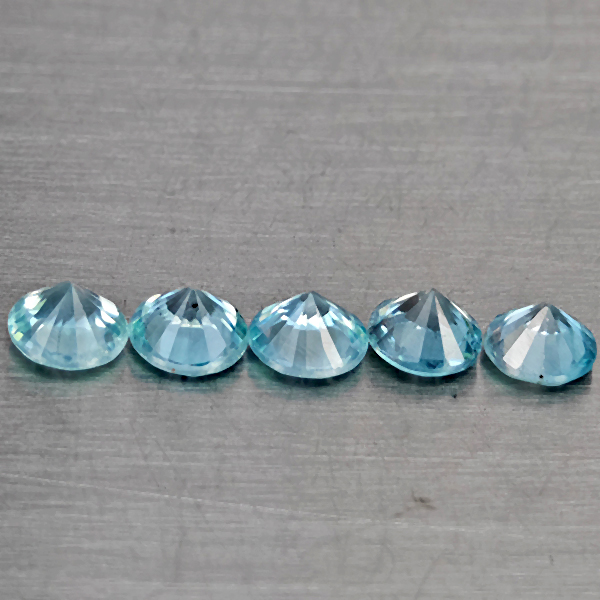Natural Blue Zircon 1.95 Ct. 5 Pcs Round Diamond Cut 4.2 Mm Gemstone from Cambodia