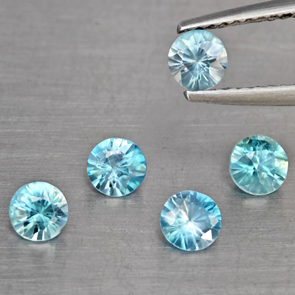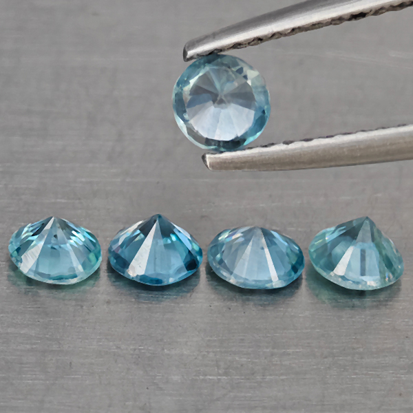 Natural Blue Zircon 1.73 Ct. 5 Pcs Round Diamond Cut 4.6 Mm Gemstone from Cambodia
