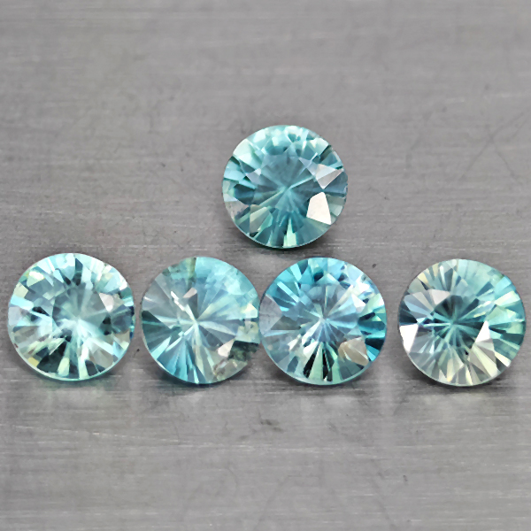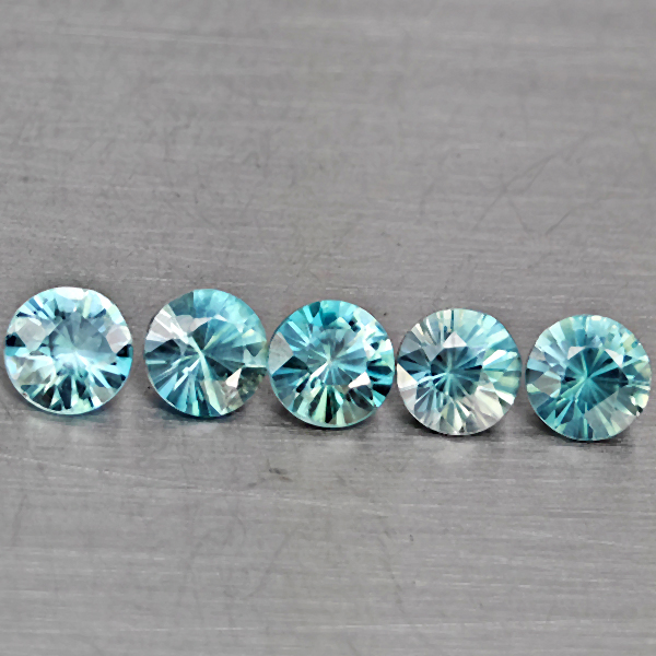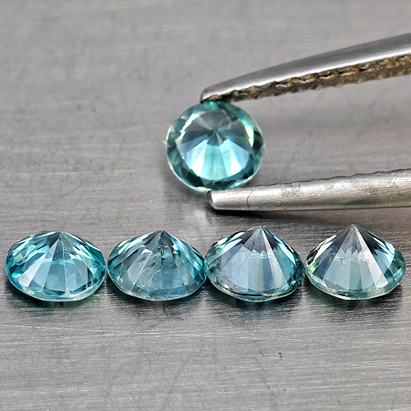 Natural Blue Zircon 1.88 Ct. 5 Pcs Round Diamond Cut 4.2 Mm Gemstone from Cambodia