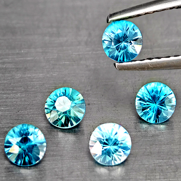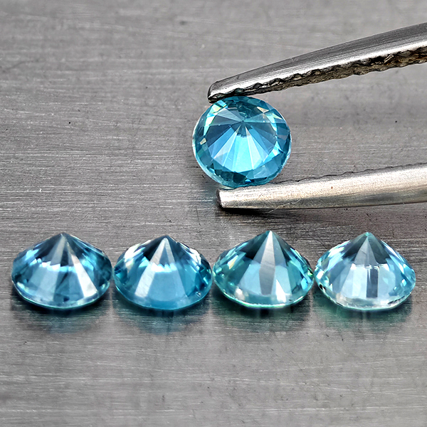 Natural Blue Zircon 2.10 Ct. 5 Pcs Round Diamond Cut 4.6 Mm Gemstone from Cambodia