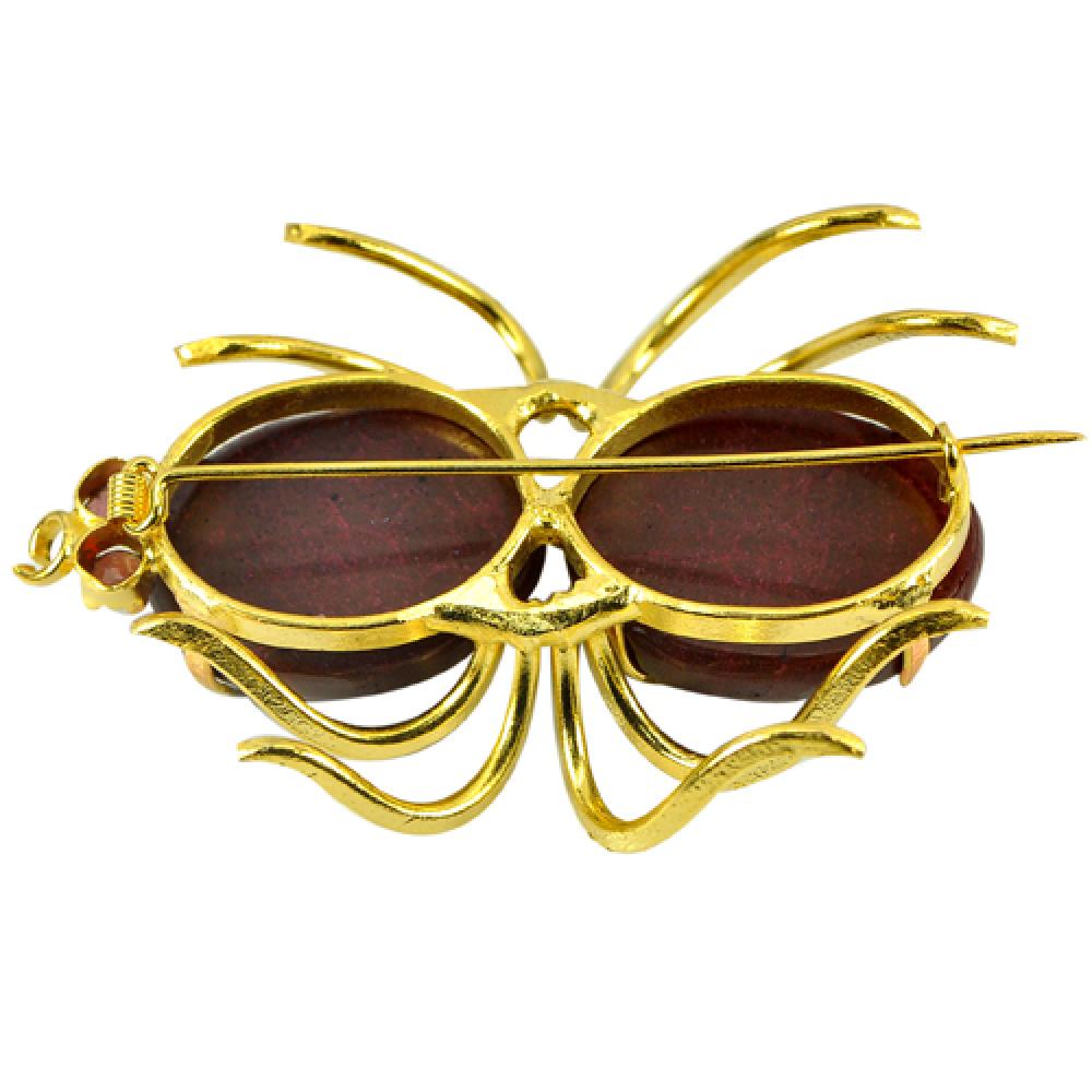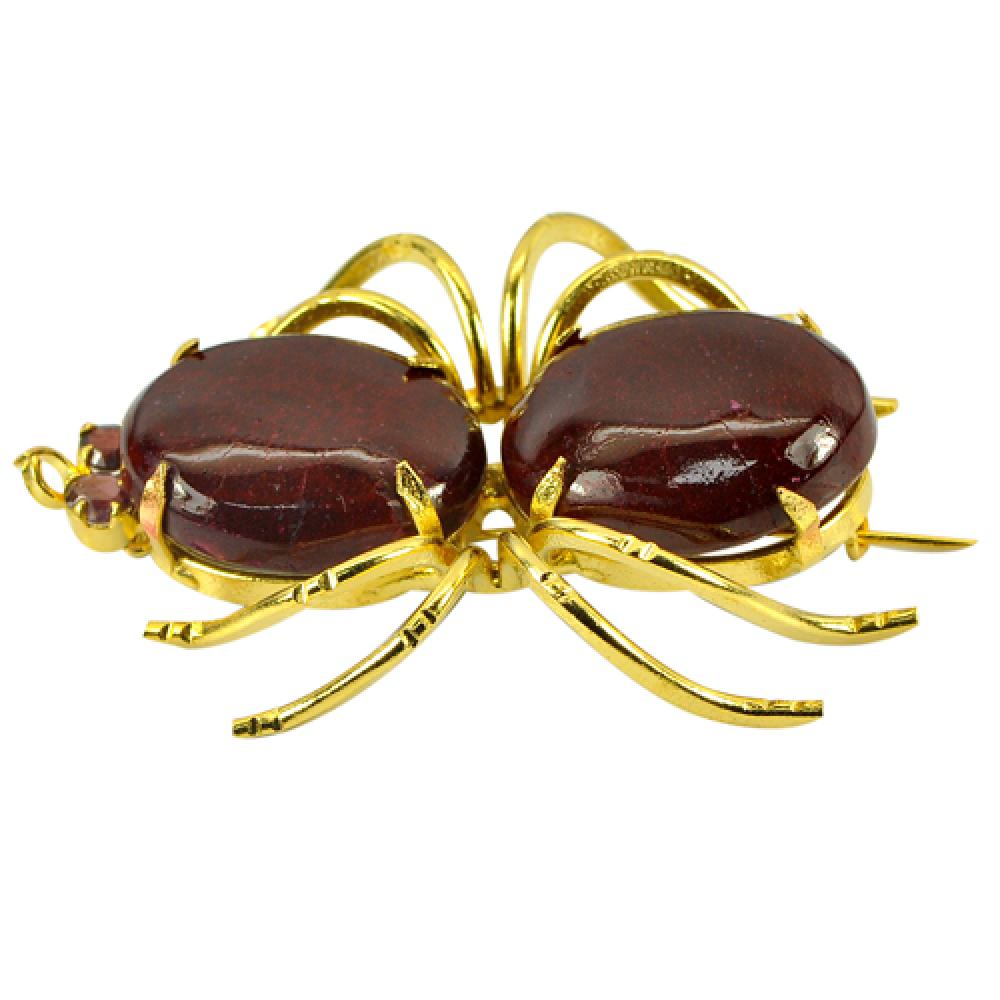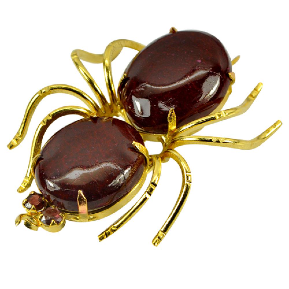 128.04 Ct. Natural Oval Cab Red Ruby with Round Red Garnet Spider Brooch Nickel