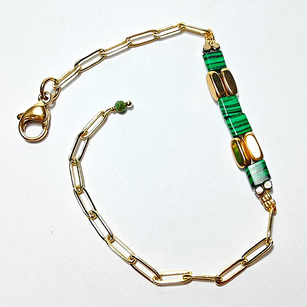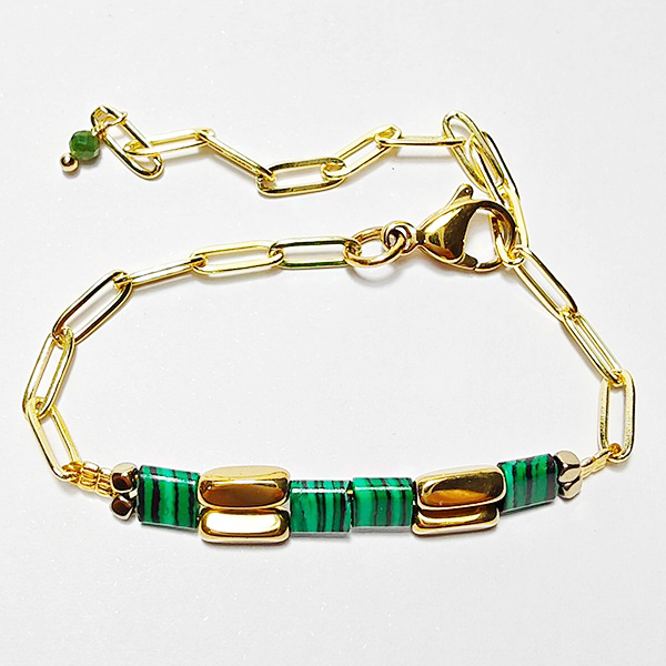 Gold Plated Silver Bracelet Jewelry Malachite Stone Max Length 7 Inch.