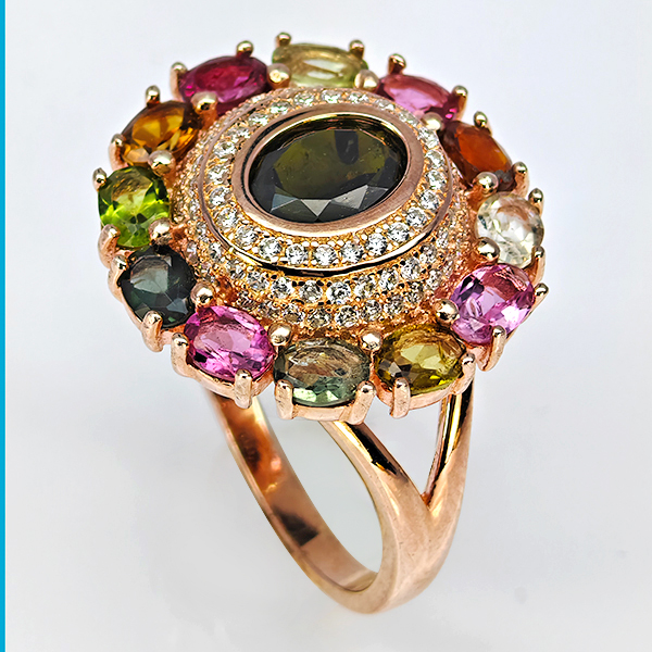 Natural Mulit Color Tourmaline Real 925 Sterling Silver Jewelry Rose Gold Plated 5.30 G. Ring Size 8