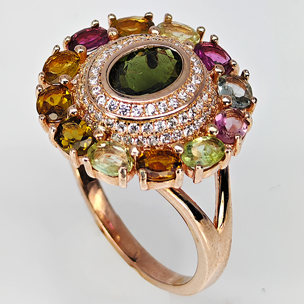 Natural Mulit Color Tourmaline Real 925 Sterling Silver Jewelry Rose Gold Plated 5.30 G. Ring Size 9