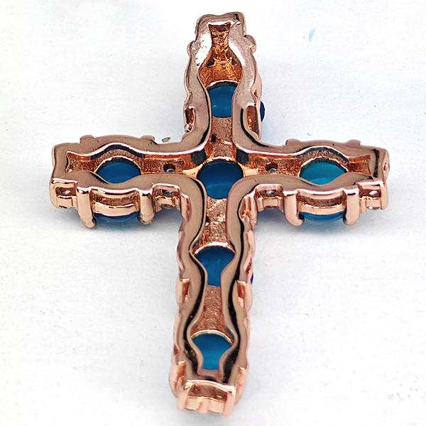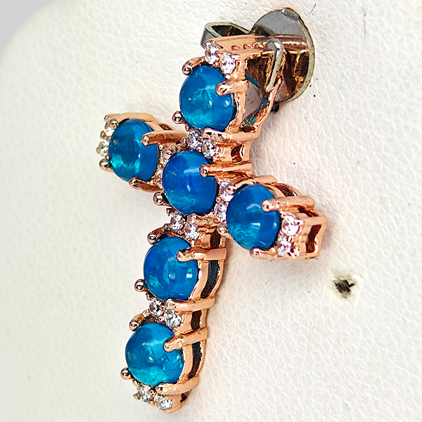 Natural Multi Color Blue Opal Real 925 Sterling Silver Jewelry Rose Gold Plated Pendant 1.80 Grams